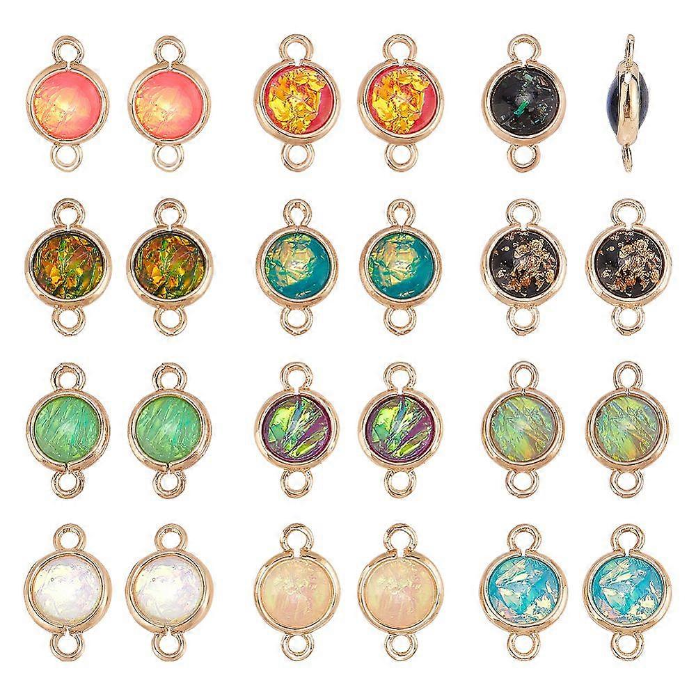 24pcs 12 colors Brass Connector Charms with Resin Flat Round Golden Mixed color 16x10x5mm Hole: 2mm 2pcs/color