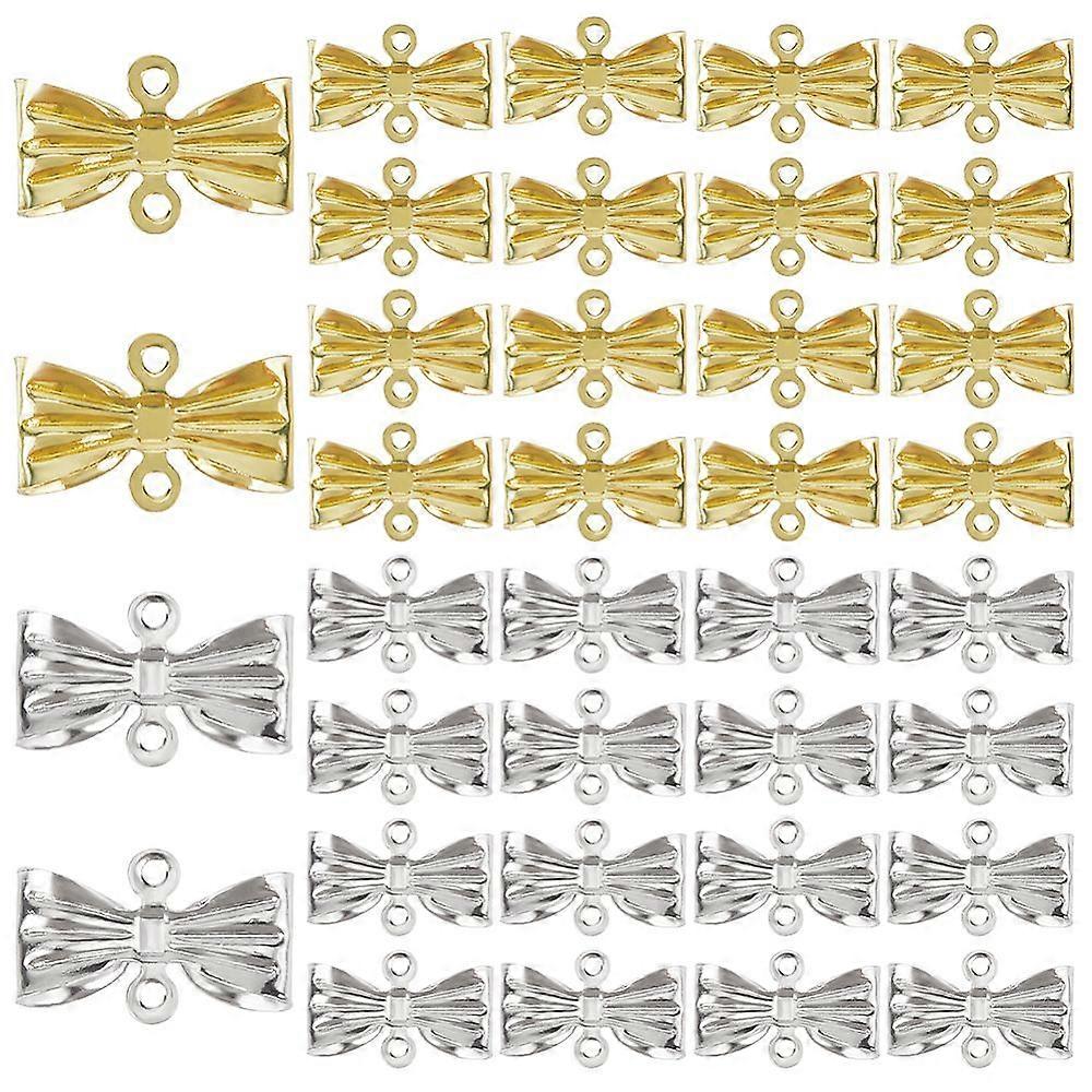 40pcs 2 colors Alloy Links Connector Charms Bowknot Platinum Golden 7.5x12x3mm Hole: 0.9mm 20pcs/color