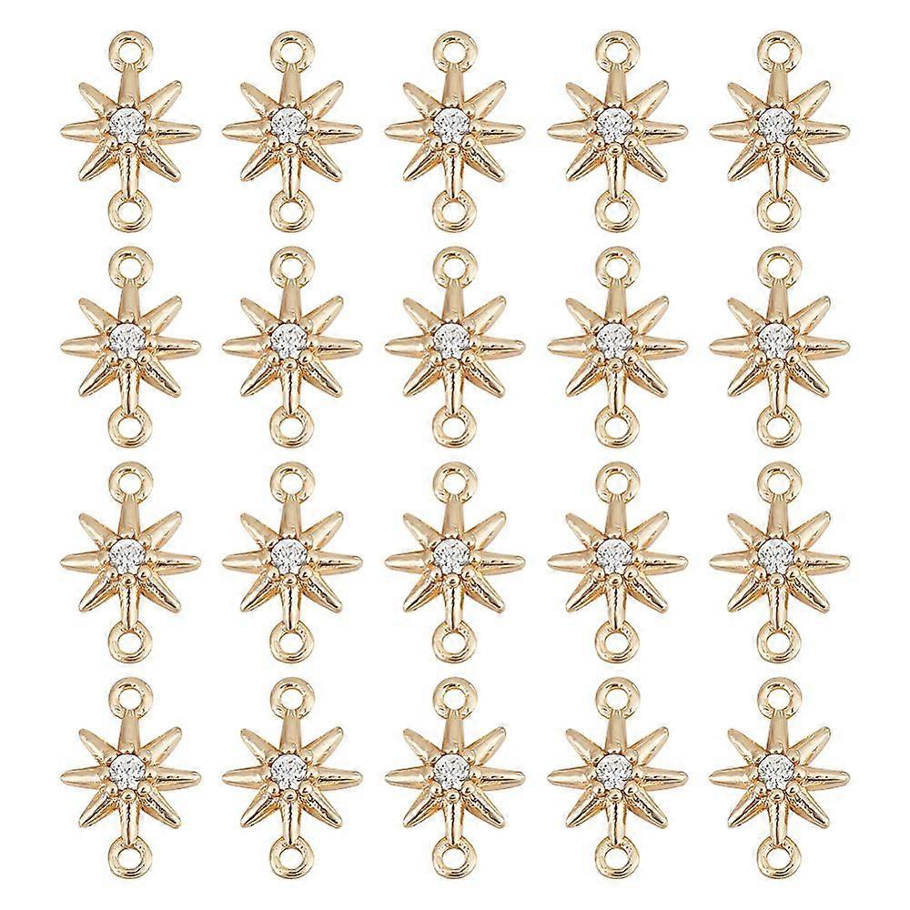 20pcs Brass Pave Clear Cubic Zirconia Connector Charms Nickel Free Star Links Real 18K golden Plated 10x7x3mm Hole: 0.9mm