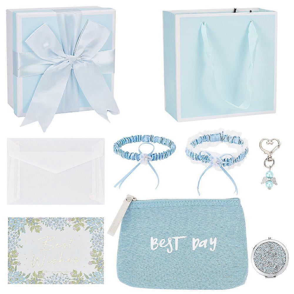 Wedding Gift sets Include Polyester Bride Anklets Paper Greeting Card Canvas Makeup Storage bag Resin Pendant Keychain and Metal Rhinestones Foldable