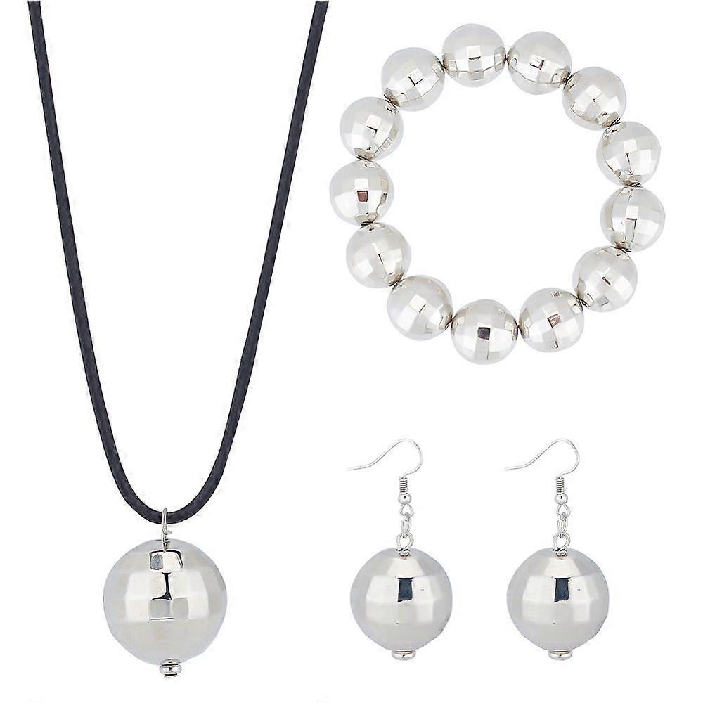 Alloy Disco Ball Beaded Stretch Bracelet Dangle Earrings Pendant Necklace Jewelry set for Women Platinum 50mm Pin: 0.7mm 2 inch(52.8mm) 22.56(57.3cm)