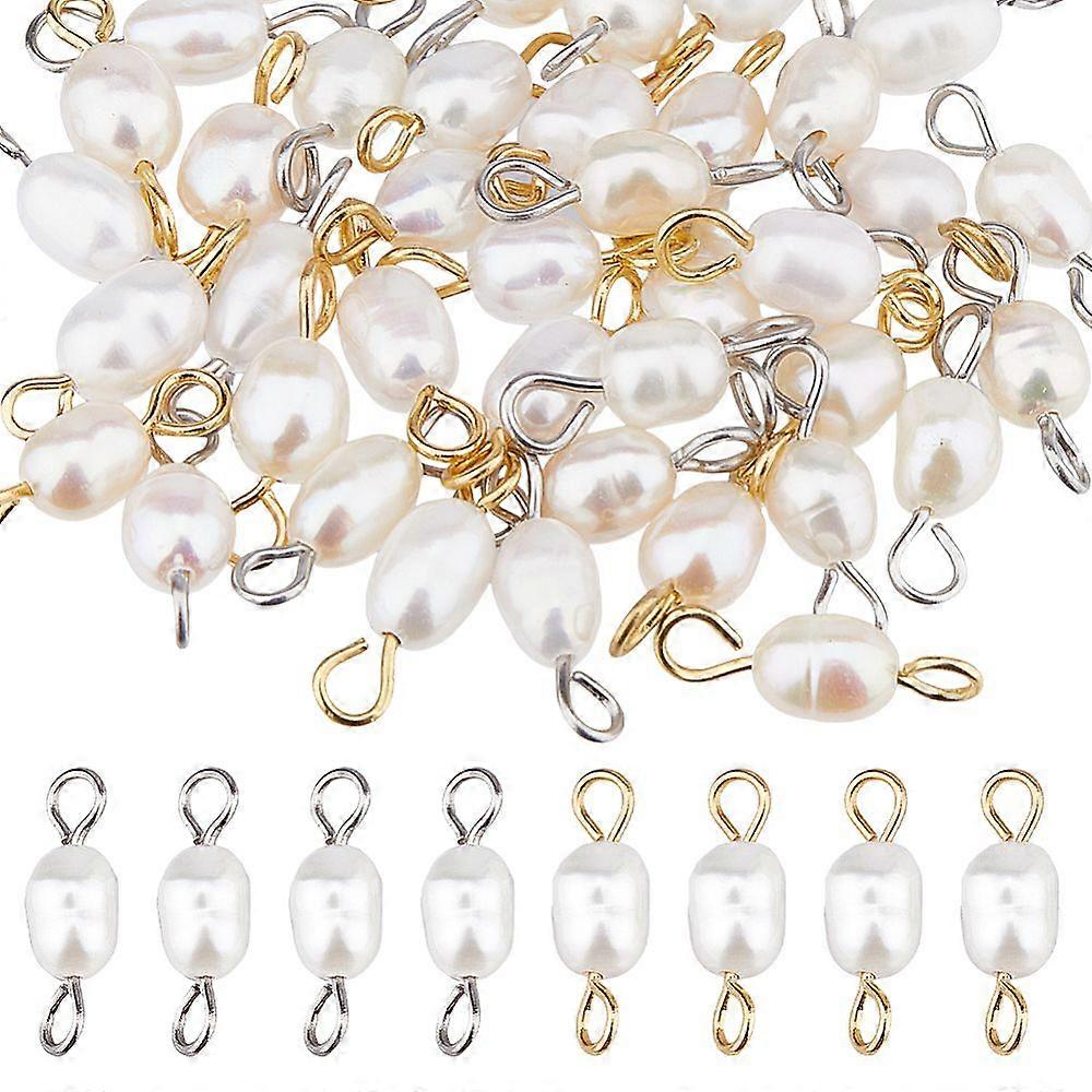40pcs 2 colors Natural Cultured Freshwater Pearl Links Connector Charms with Stainless Steel Findings Oval Platinum Golden 11x4.5x4.5mm Hole: 2mm 20pc