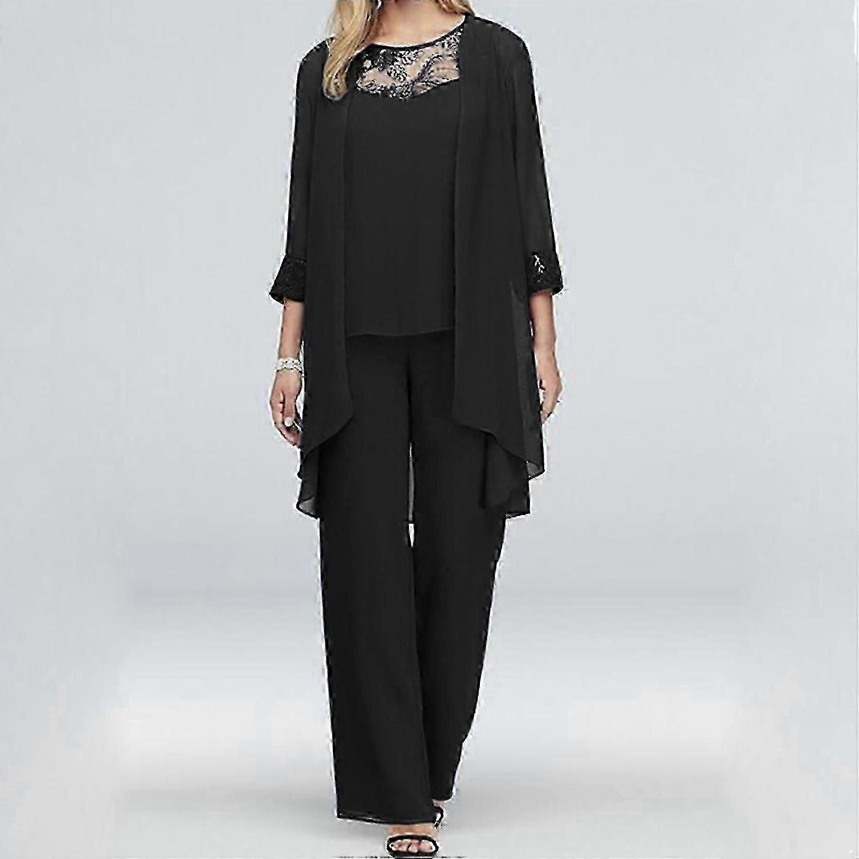 Mother of The Bride Pant Suits 3Pcs Women Wedding Formal Outfit Set Chiffon Evening Gown Plus Size - XN