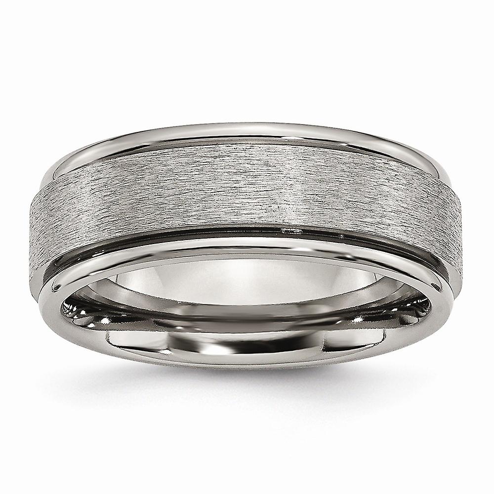 Titanium Polished and satin Grooved Edge 8mm Satin Polished Band Ring Size 14.5 Ring for Women and Men