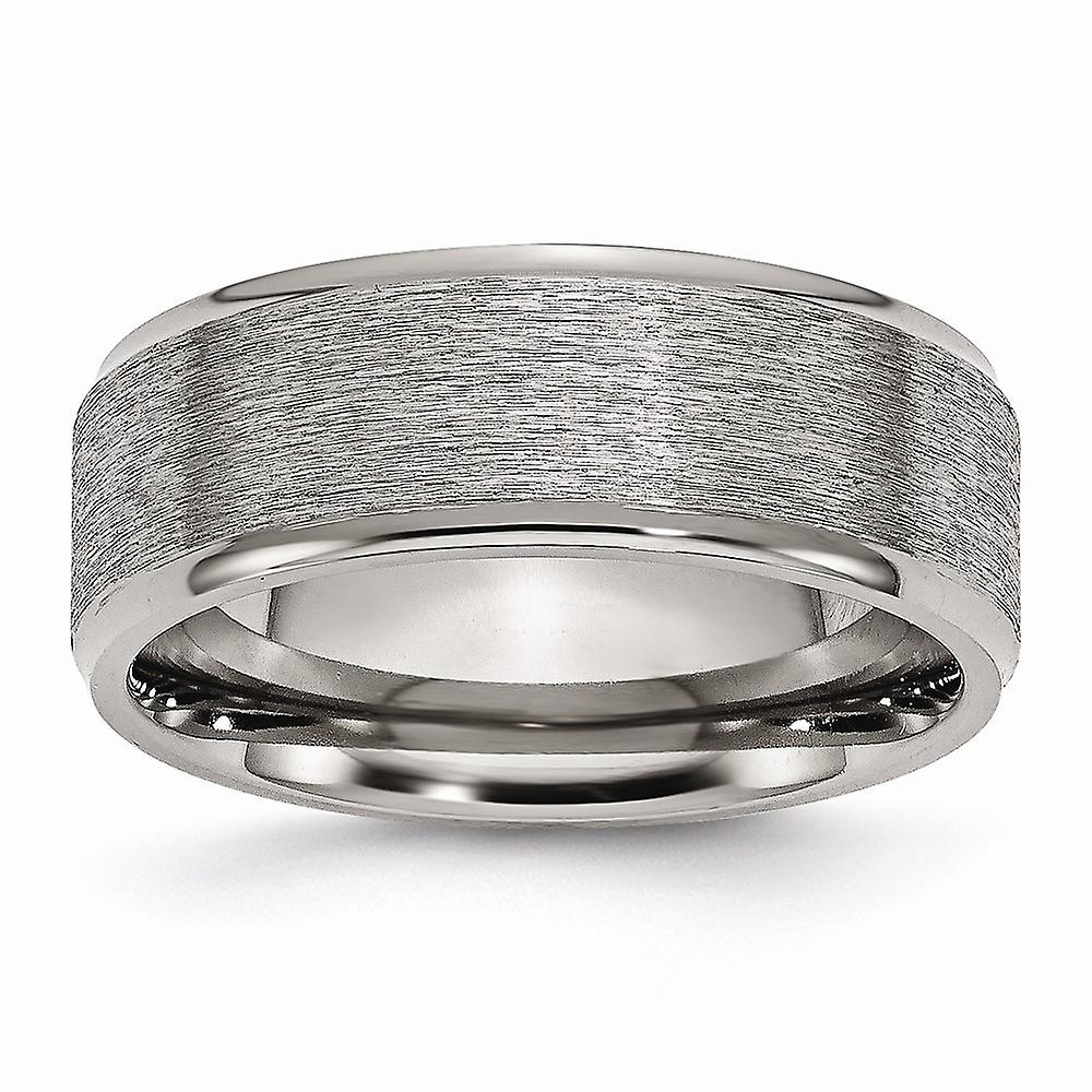 Titanium Brushed Grooved Edge 8mm Satin Polished Band Ring Size 13.5 Ring for Women and Men