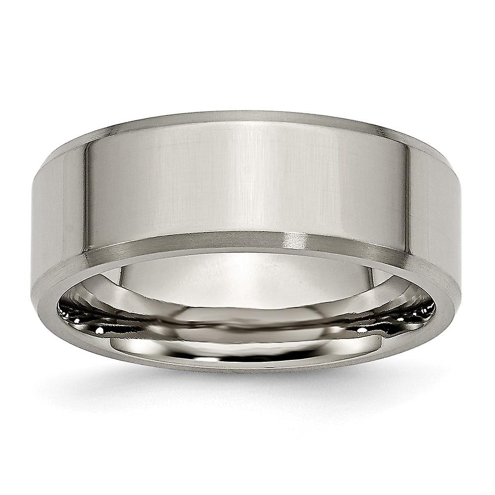 Titanium Brushed Polished Beveled Edge Bevel Edge 8mm Brush/Polish Band Size 13.5 Ring for Women and Men