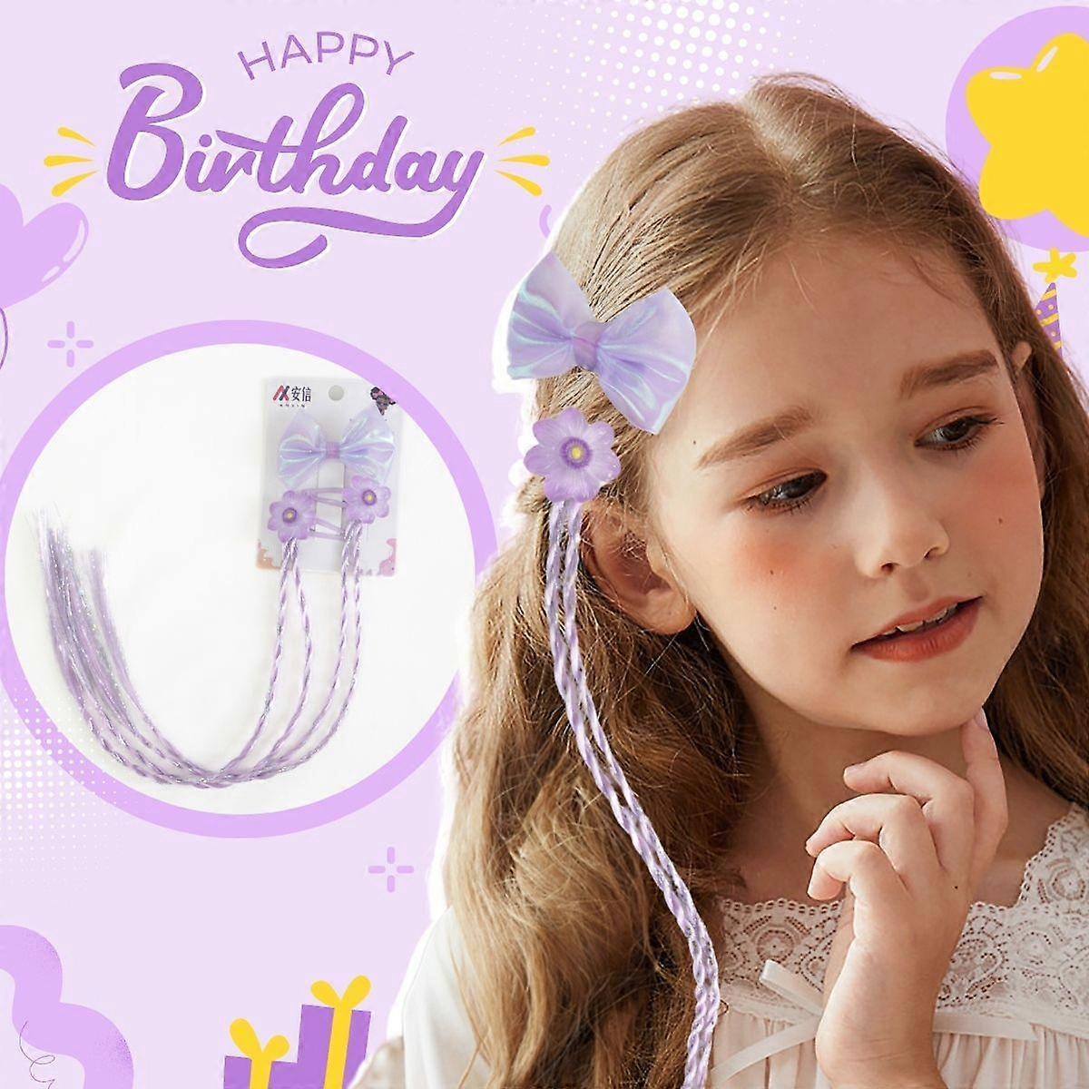 Children's Princess Violet Bow Hair Clip, Purple Flower Hair Accessory, Sparkling Braids, Little Girl Hair Accessory