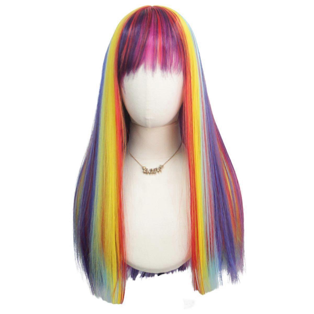 European and American colorful rainbow wigs, realistic scalp party wigs and headgear