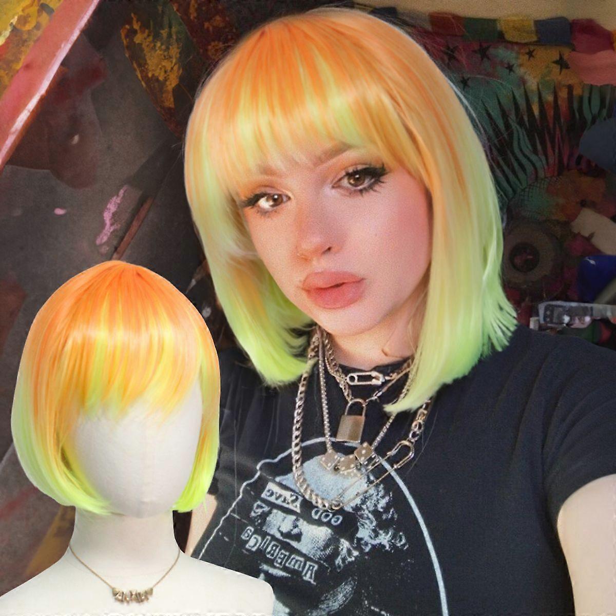 Anxin Multicolor Gradient Bob Hair Sunglasses Accessories Bob Hair Queuing Wigs