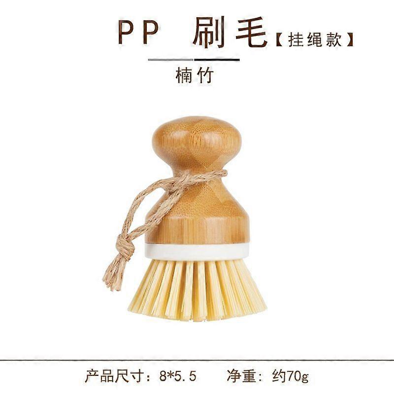 Bamboo Scrub Brush Clean Pan, Dish and Vegetable, Natural Bristles Palm Pot Brush Round Mini Dish Brush for Kitchen Sink Cleaning