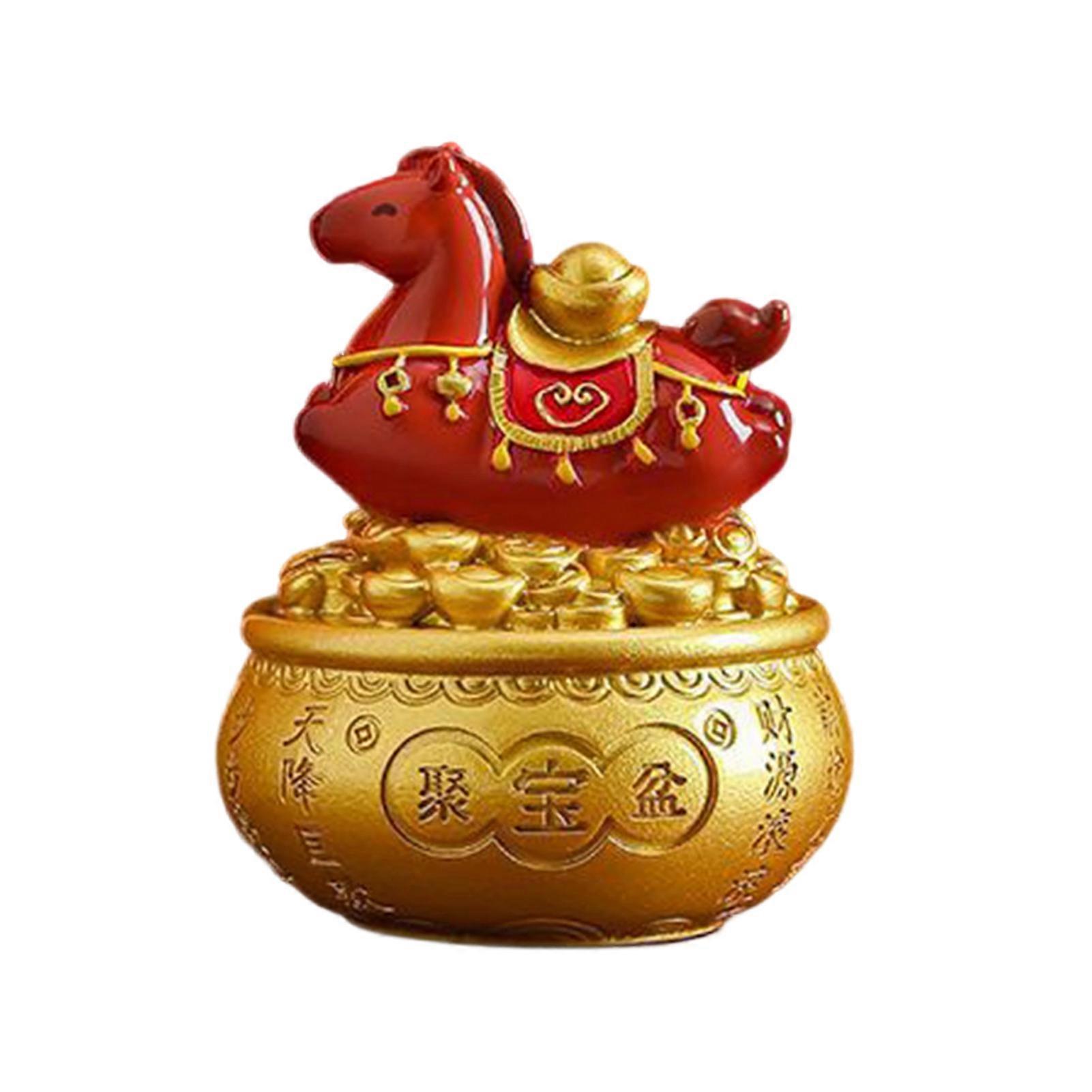 Horse Figurine Resin Ornament With Auspicious Details for Home Decor