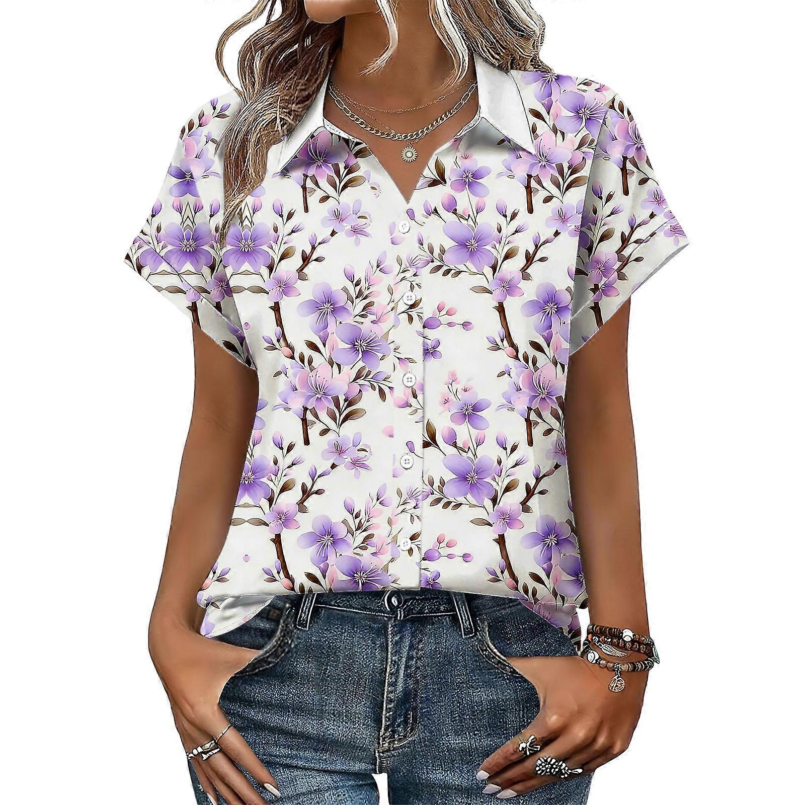 Women's Button-Down Shirts, Short Sleeve, V-Neck, Elegant and Casual Lavender XL
