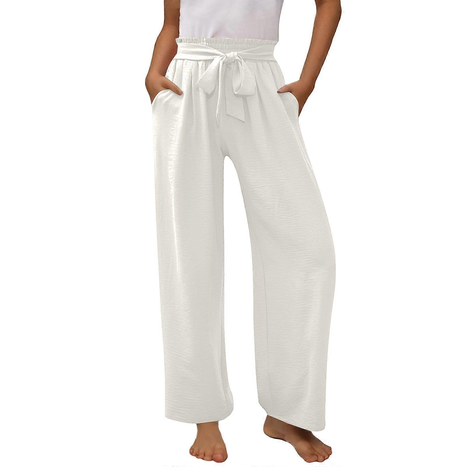 Women's Wide Leg Pants with Pockets Lightweight High Adjustable Tie Knot Loose Trousers White XL