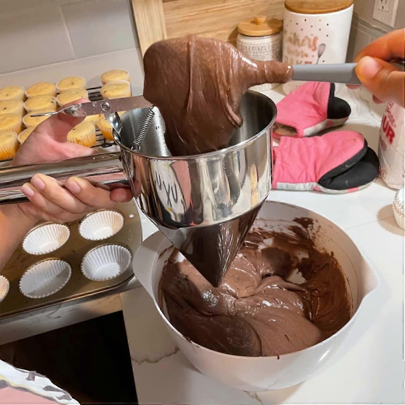 Pancake Batter Dispenser with Stand, Multi-Caliber Stainless Steel Funnel Cake