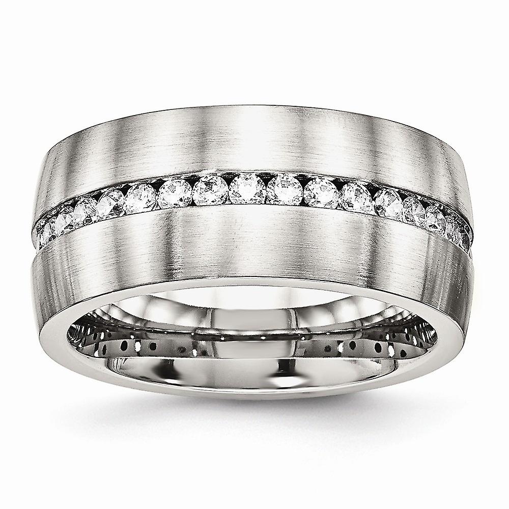 10mm Stainless Steel Brushed and Polished Cubic Zirconia Ring Size 9 Ring for Women