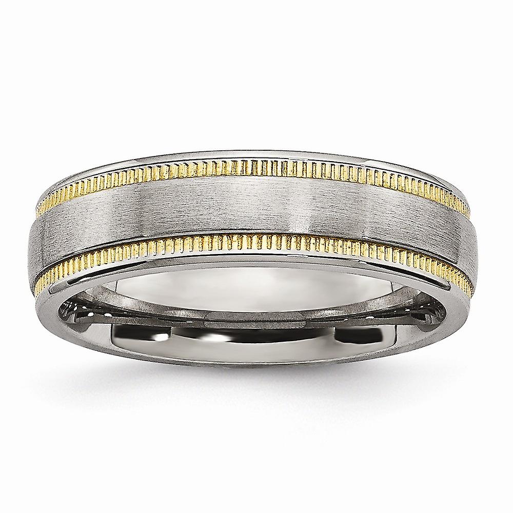 6mm Stainless Steel Brushed and Polished Yellow Ip-plated Band Ring - Size 7.5 - In Solid Stainless Steel - - Finish: Polished & Brushed -