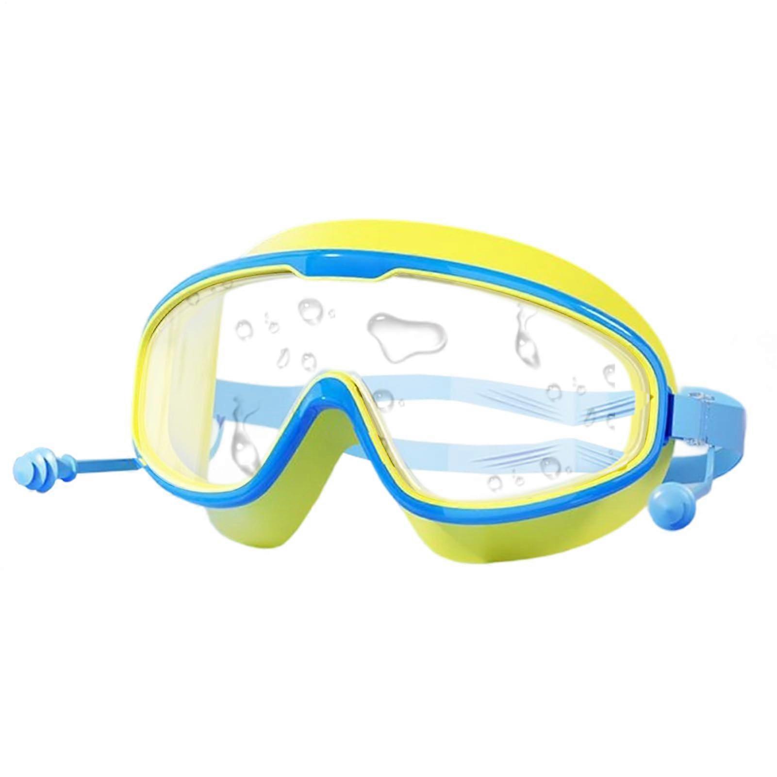 Kids Swim Goggles AntiFog UV Protection NoLeak Wide Vision with Silicone Earplugs Blue Yellow