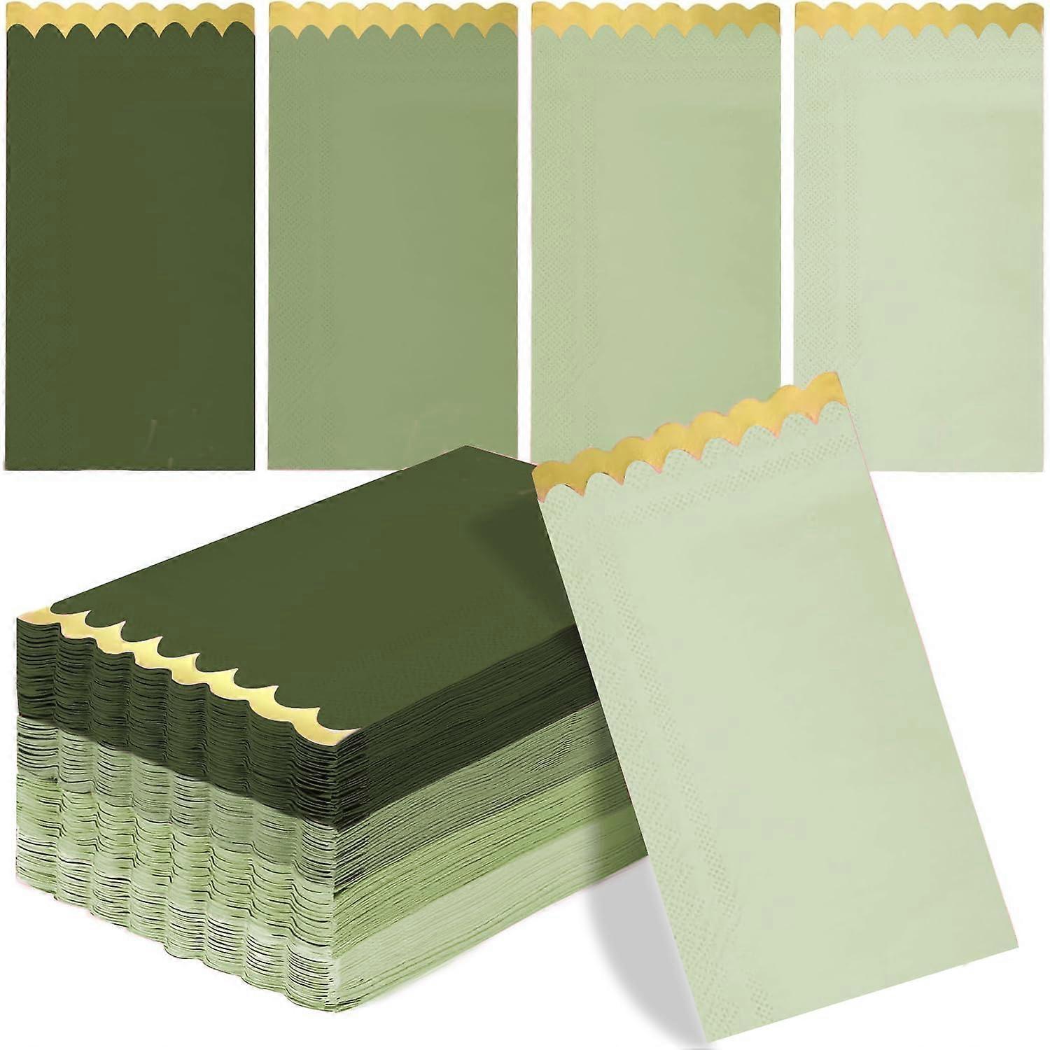 100 Pack Green Cocktail Napkins with Elegant Gold Foil Scalloped Edges for Weddings and Parties