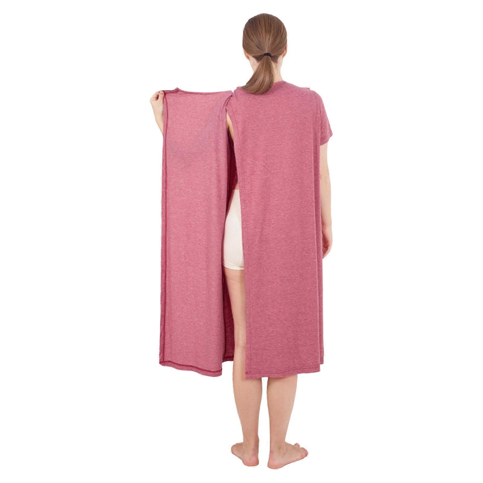 Short Sleeve Hospital Gown For Women Easy Dressing With Open Back Tear Away Shoulder Snaps Adaptive Clothing Night Robe red flower XL