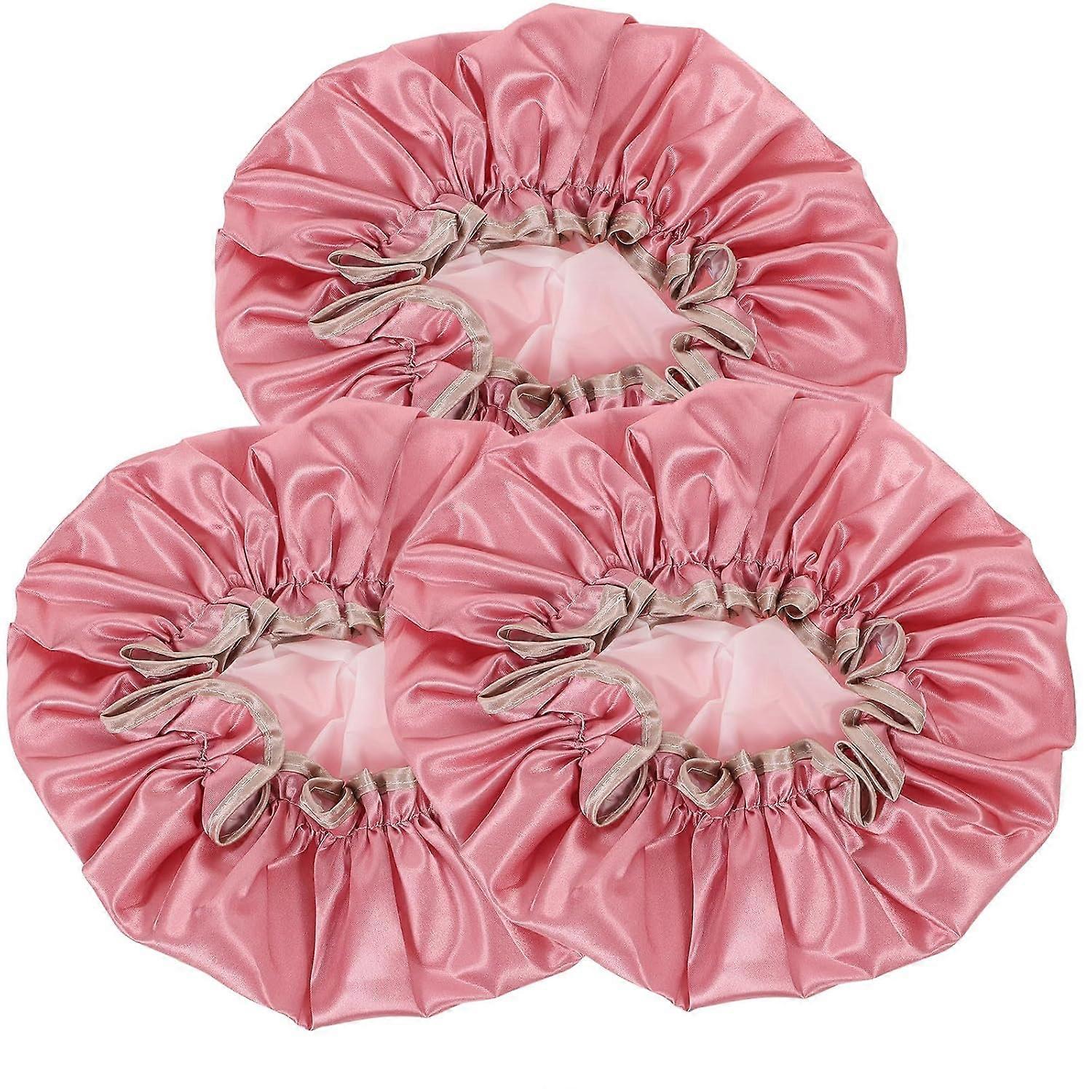 Waterproof Double Layer Shower Caps 3pcs Set Peva Thickened Oil-proof Bath Hair Covers for Women Adults Reusable Shower Bonnets for Hair Protection