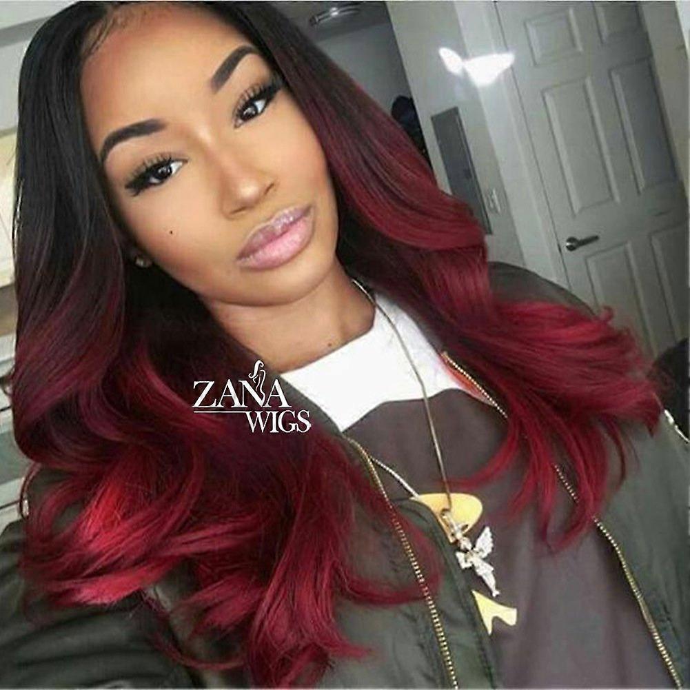Brazilian Virgin Hair Lace Front Wig Ombre 1B Red Body Wave Glueless Natural Hairline for Black Women