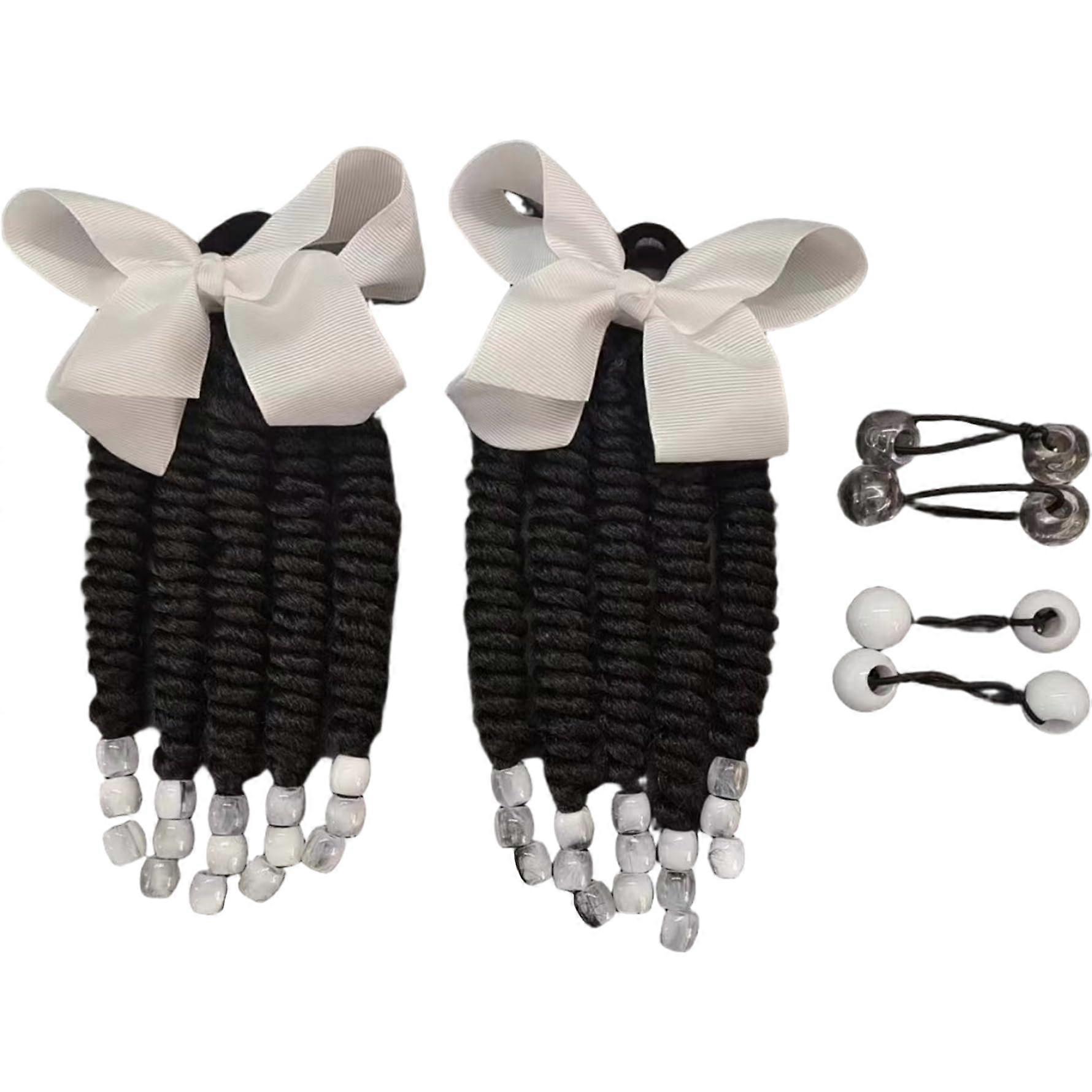 Product overview A 1 pair set of 6.5 inch braided ponytail extensions designed for young girls. Each white extension is finished with beads and a bow for a natural, playful look. Size and material details are provided for compatibility and safe daily use. Key benefits Natural appearance: Realistic braided texture with decorative beads and a bow that blends with your child hair for an easy, finished style. Gentle and stable materials: Constructed from temperature wire and quality synthetic fibers to resist tangling while remaining lightweight and comfortable for children. Quick and secure attachment: Designed to clip or tie into existing hair for a snug fit that stays in place during play without pulling delicate strands. Versatile styling: Adds length and detail instantly, allowing simple changes to everyday looks without a full hairstyle redo. Features Color: White Material: temperature wire and synthetic fibers Size: about 16.5 cm 6.5 inch Package contents: 1 pair of kids ponytail extensions Easy to remove and reuse for multiple occasions How this solves common problems Saves time when styling hair for school mornings or events by providing an instant, tidy ponytail with decorative accents. Protects delicate hair by avoiding excessive brushing or heat styling; the extension attaches without pulling. Prevents tangling and fraying thanks to durable, tangleresistant construction suited for active wear. Suggested use scenarios School days: Create a neat braided ponytail with beads and a bow in seconds for a polished, comfortable look. Parties and celebrations: Add a decorative finishing touch for birthdays or holiday events without complicated styling. Activities and performances: Keep hair secure and attractive for dance recitals, photo sessions, or everyday play. Notes Manual measurement, please allow slight differences in size. Colors may vary slightly due to different screen displays. Contents of package 1 pair kids ponytail extension