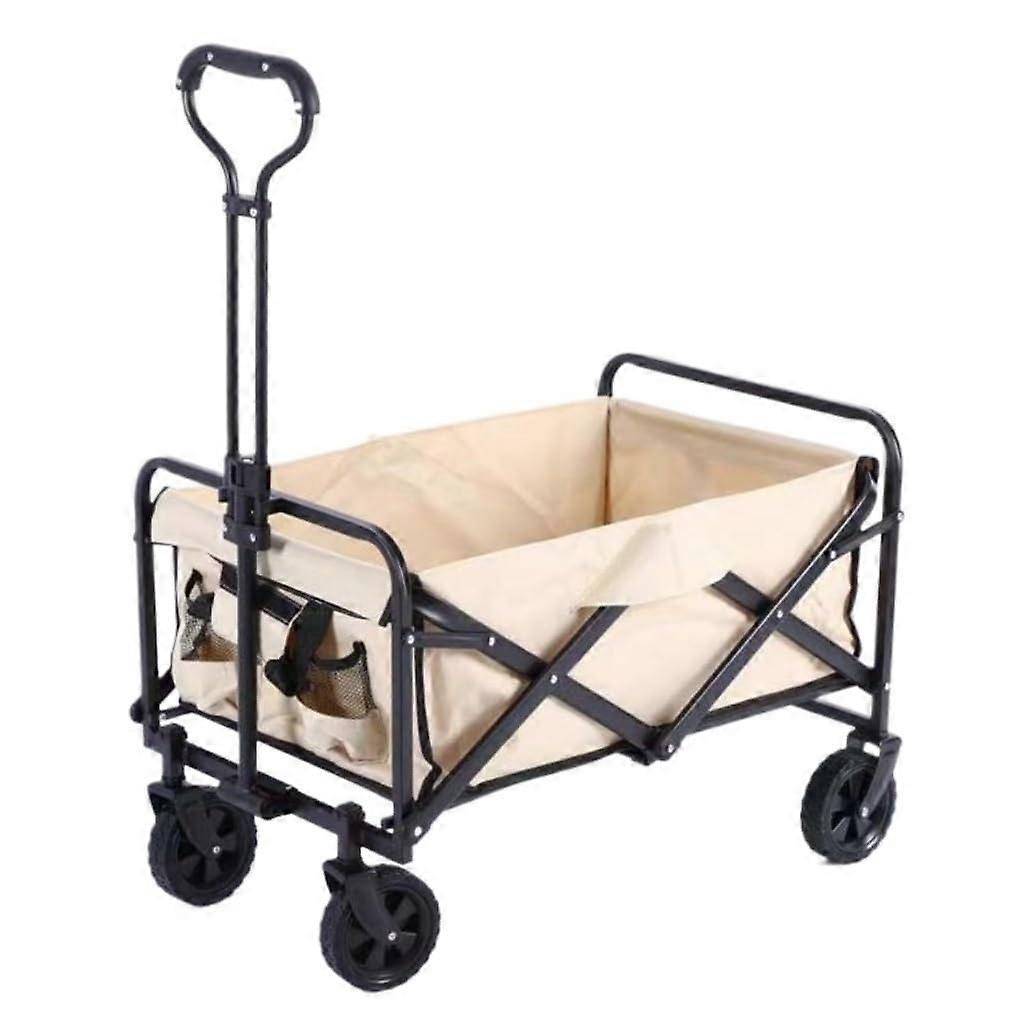 Folding Utility Wagon 100kg Load Capacity with ShockAbsorbing Wheels and Adjustable Handle for Camping and Gardening (Medium)