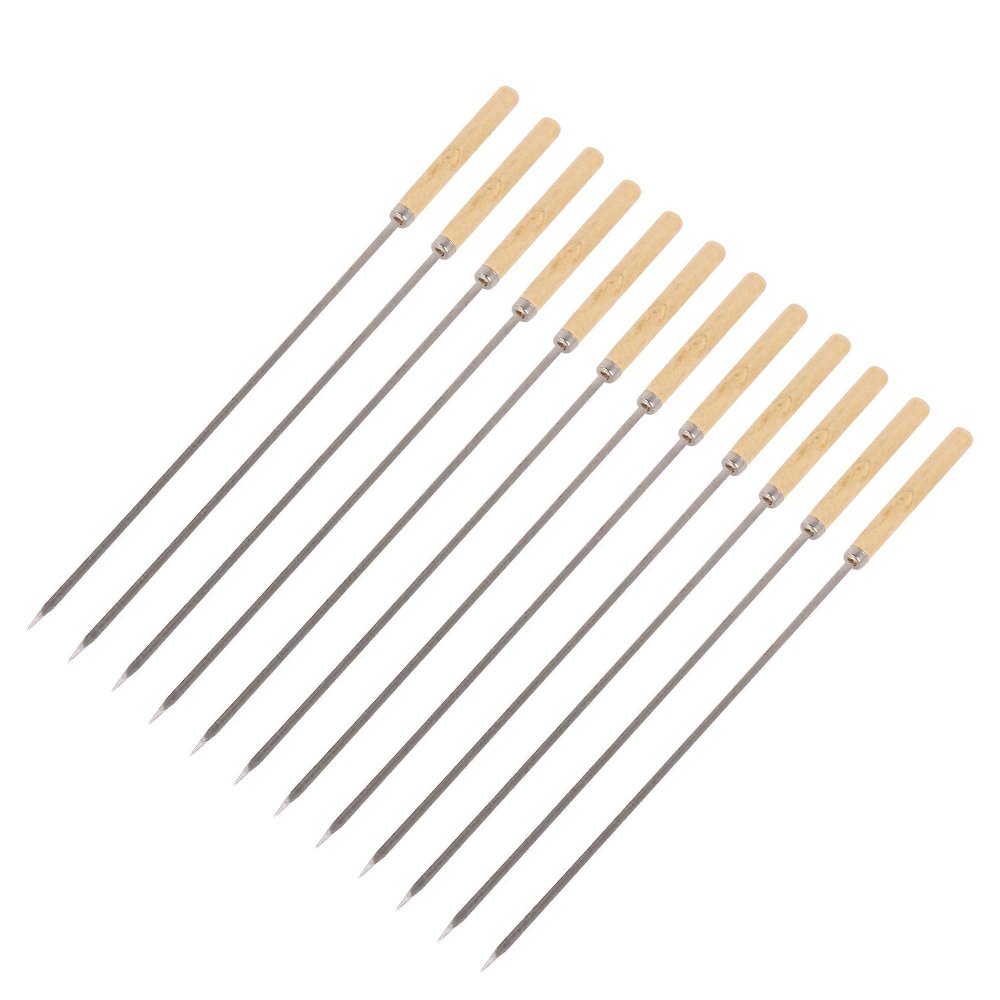 Stainless Steel Kabob Skewers 13 Inch Flat BBQ Grill Skewers with Wooden Handle for Outdoor Grilling