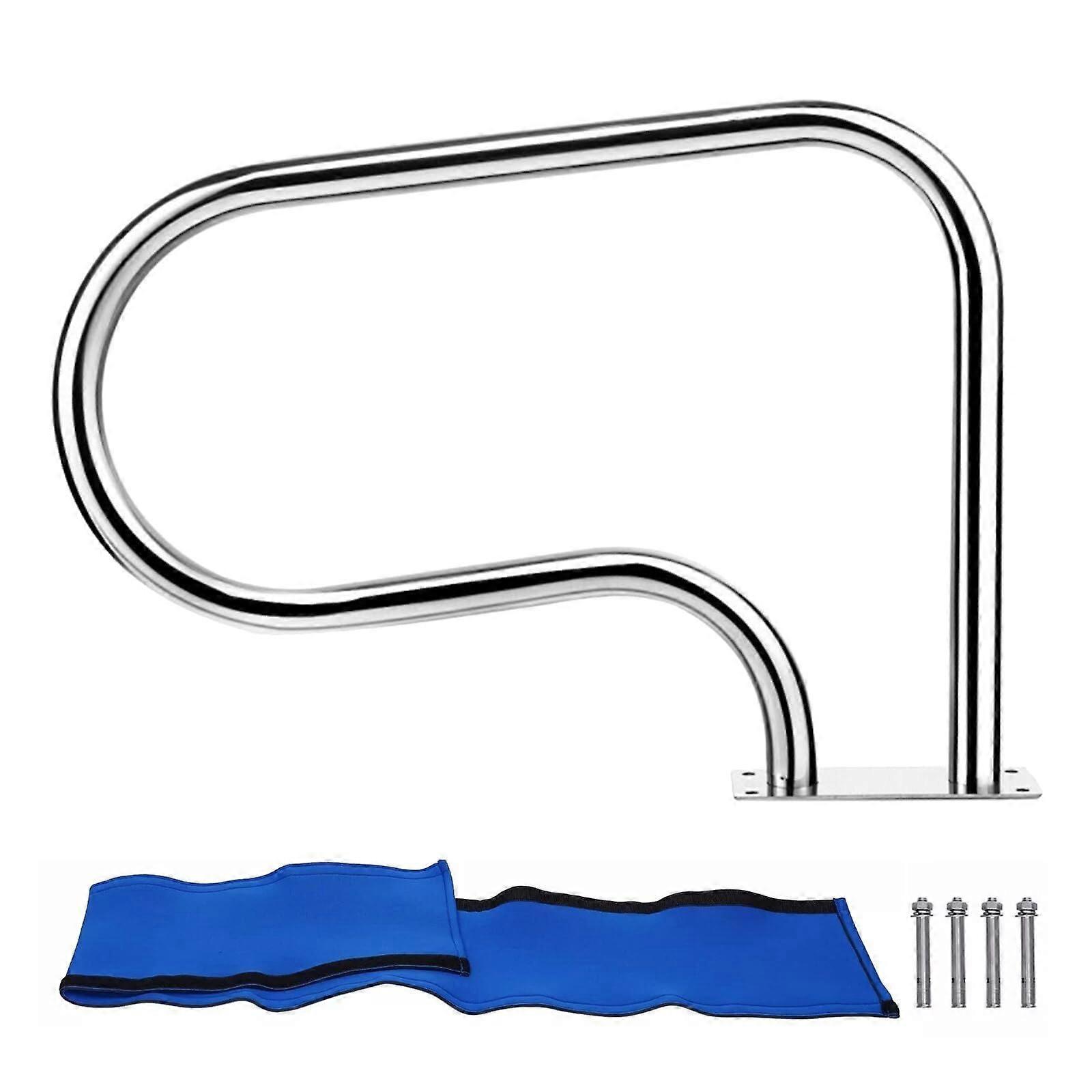 304 Stainless Steel Pool Handrail with Non Slip Blue Grip for Inground Pool Steps, 32 x 22.5 in