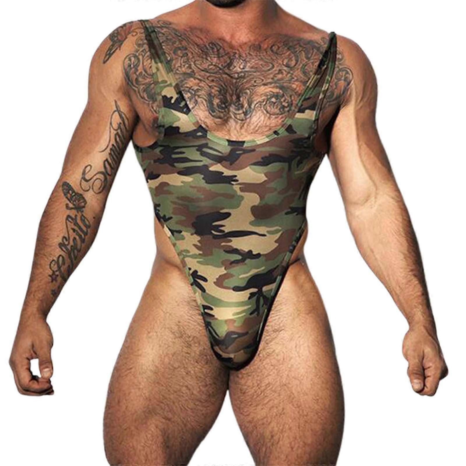 Men's Camouflage Wrestling Singlet Bodysuit XL UBack Muscle Fit Tummy Control Jumpsuit