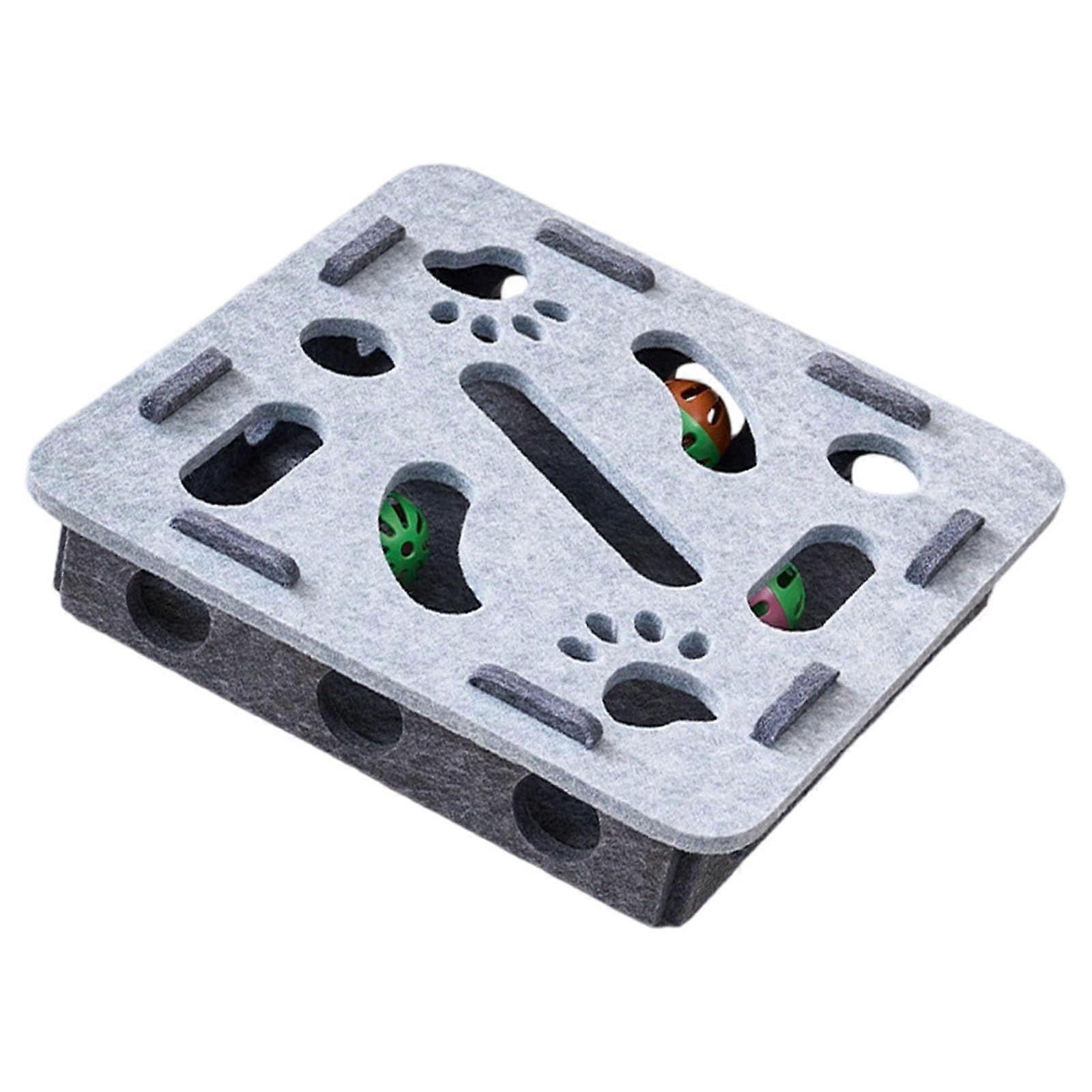 Cat Puzzle Toy with Bells and Compartments, Felt Interactive Play Box for Indoor Cats