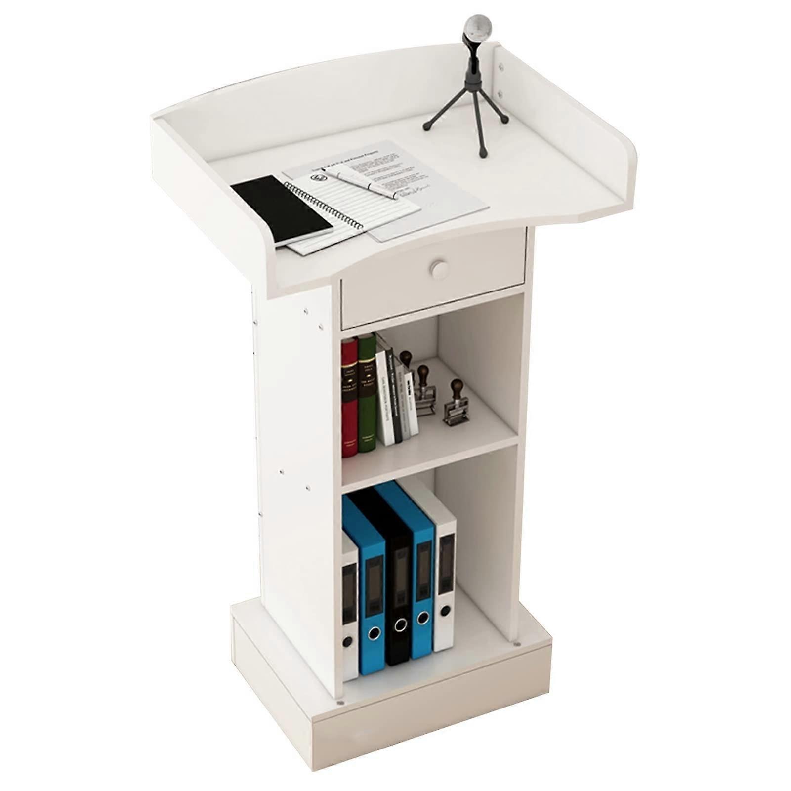 Wooden Podium Stand with Storage Drawer and Shelves for Classroom Church Office Durable Design