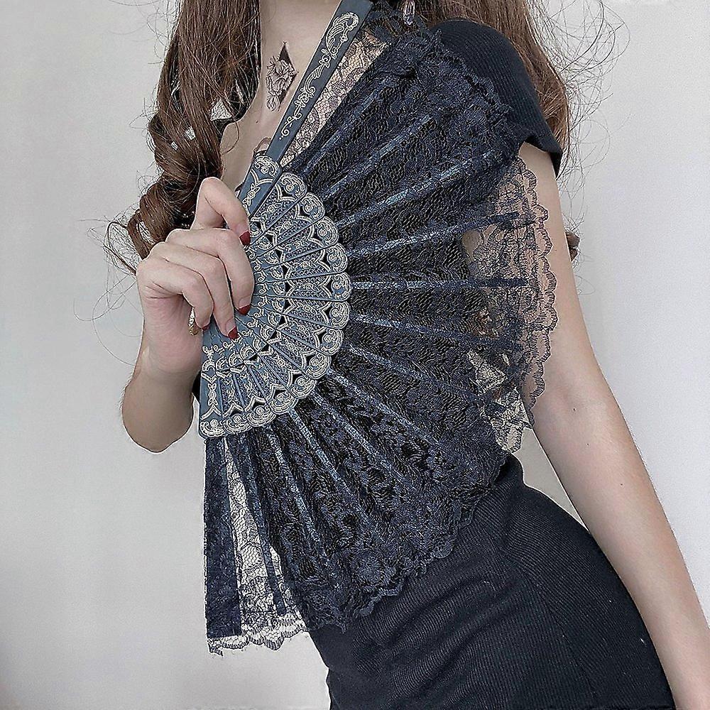 European Vintage Lace Folding Fan Women Dance Performance Photography Prop Decorative Hand Fan with