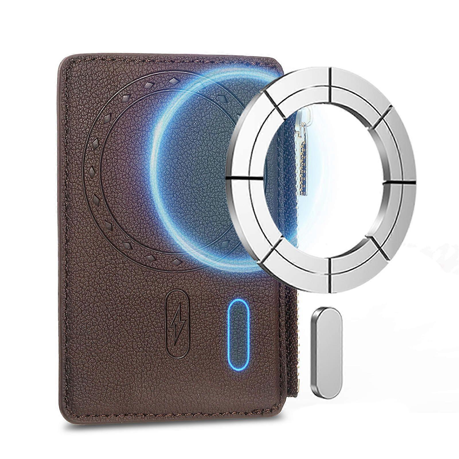 MC-W31 Magnetic Zipper Card Holder PU Leather Color-Block Card Pocket - Coffee