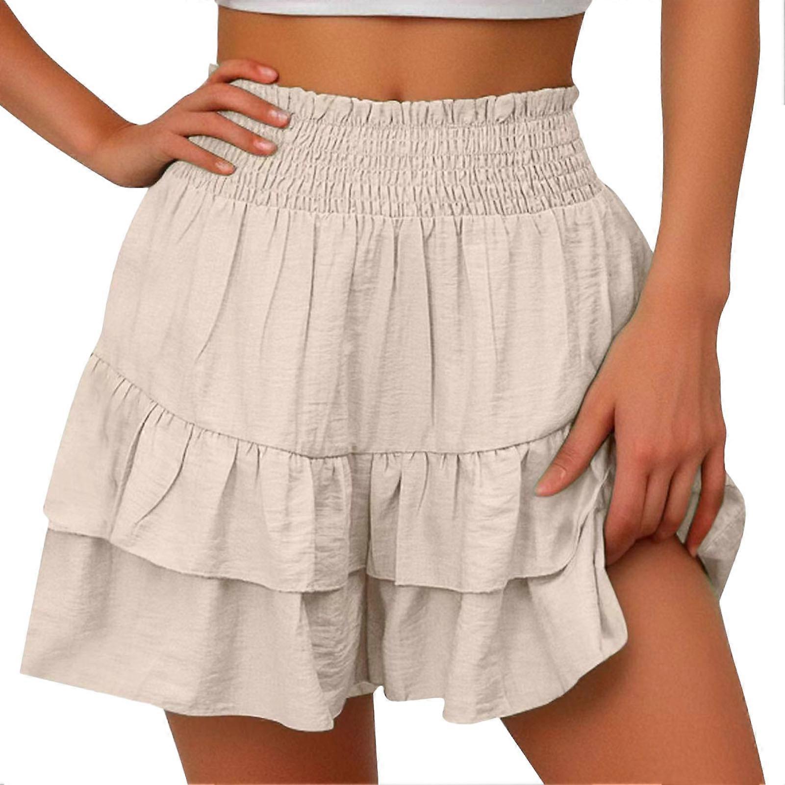 High-Waisted Women Shorts Layer Ruffle Wide Leg Casual Skirt Shorts Solid Color Work Leisure Beach