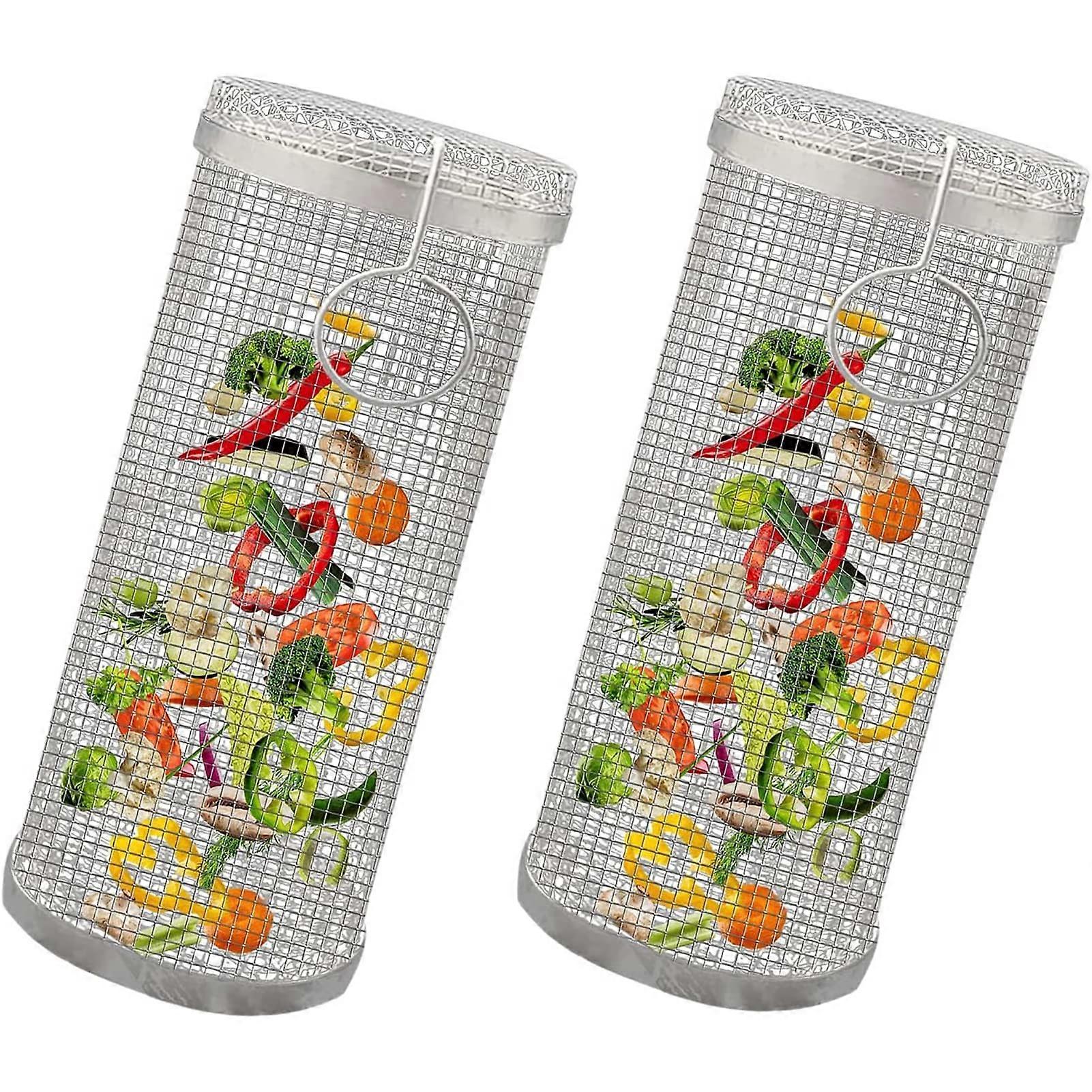 Vegetable Grill Basket A stainless steel rolling grill basket designed to expand what you can cook on a grill. The cylindrical wire mesh holds a mix of foods securely while it rotates, allowing even cooking and easy handling with a grill fork. Made from 304 stainless steel, it works well with moist items and is simple to clean and store. Key benefits Grill a variety of foods together without losing small pieces through the grate. Ideal for vegetables, small fruits, and bite sized proteins. Even cooking from the rolling design reduces flipping and sticking, helping foods brown uniformly. Compatible with a standard grill fork for easy control and turning while cooking. Dishwasher safe for quick cleanup; can also be scrubbed with a pre soaped steel wool pad to restore shine. Features and performance Material: 304 stainless steel for durability and food contact suitability. Design: wire mesh cylinder that rolls to expose all sides to heat. Capacity and speed: can roast multiple items at once. Designed to handle several chicken wings at once and capable of baking up to 20 wings in about 15 minutes when used as intended. Suitable foods: chicken, onions, garlic, pork, pears, peaches, grape tomatoes, meatballs and other small or wet ingredients. Wet food friendly: mesh and stainless steel construction allow cooking of items with marinades or natural moisture. Specifications Name: Vegetable Grill Basket Size options: approximately 20 x 9 x 9 cm or 30 x 9 x 9 cm Material: 304 stainless steel Practical uses and scenarios Backyard barbecue: Load mixed vegetables, small cuts of pork, or wings into the basket to cook evenly without individual turning. Camping or tailgating: Pre load the basket with marinated meats and vegetables, refrigerate, then place directly on the grill for a simple camp meal. Party or family meal prep: Use multiple baskets to prepare larger quantities; for example, four rolling baskets can cook for a group in the same timeframe. Care and storage Dishwasher safe for convenience. For added shine, use a pre soaped steel wool pad to remove grill residue. Can be pre loaded and kept in the refrigerator until ready to grill. Note small variations in color may occur due to lighting in photos, and measurements are approximate due to manual measurement. This rolling grill basket is a practical tool for anyone who wants to grill a wider range of foods with less fuss and easier cleanup.