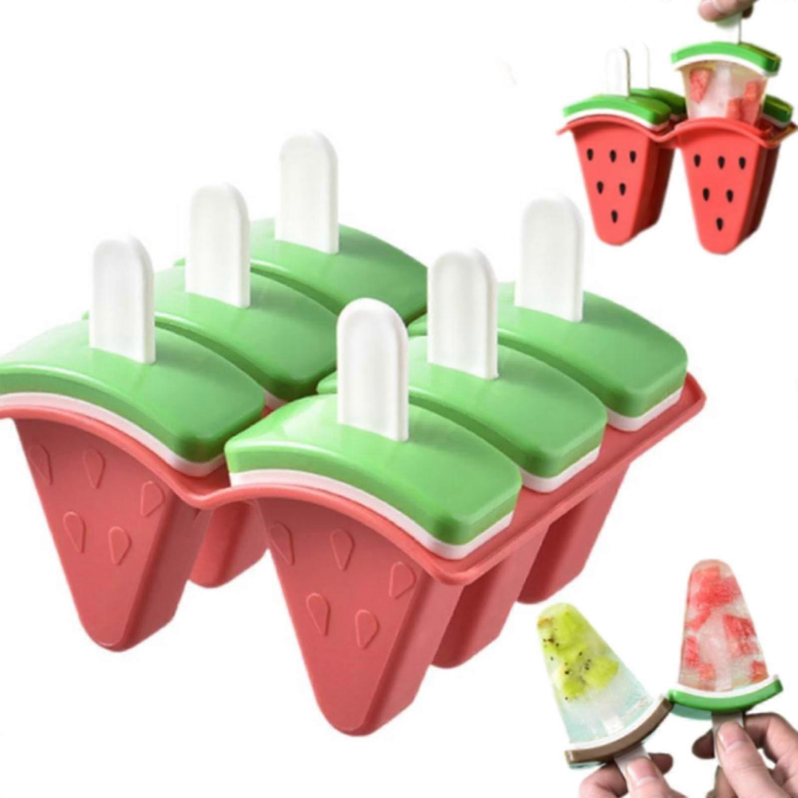 Watermelon Shape Popsicle Molds Silicone Ice Cream Makers Easy Release Tray with Sticks Red 6 Grids
