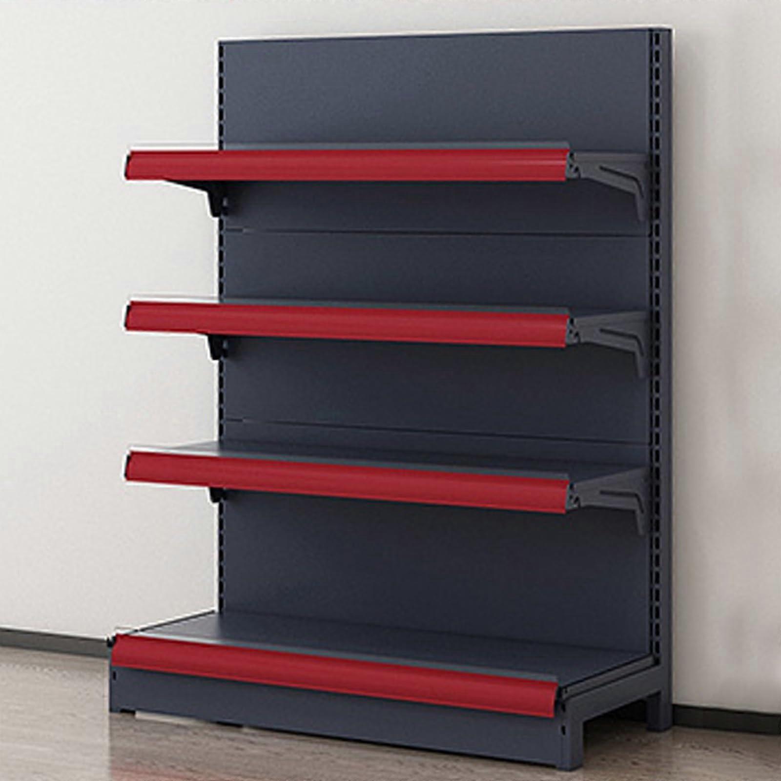 Heavy Duty Red Retail Wall Display Rack with Adjustable Metal Shelves for Grocery and Liquor Stores