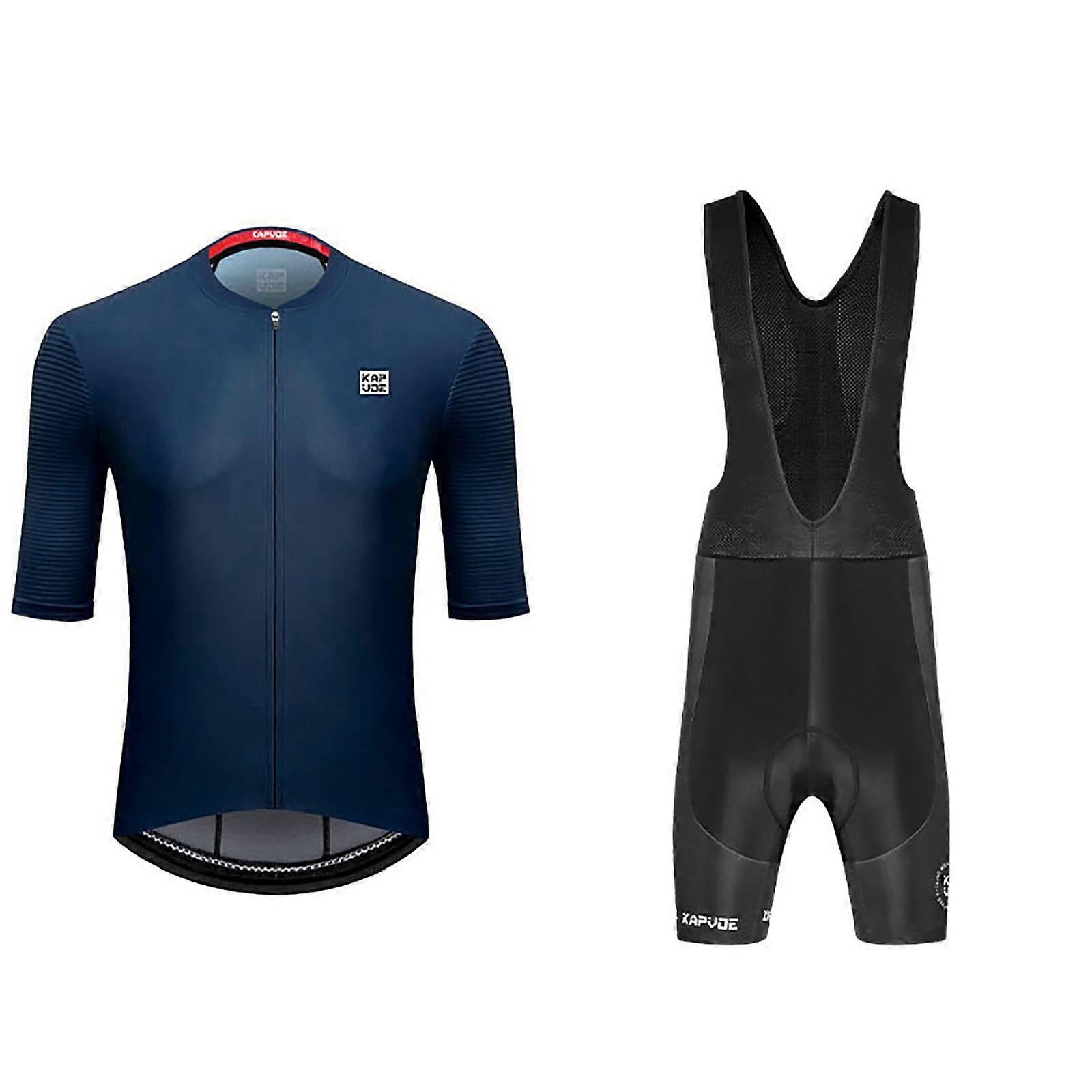 Men's Cycling Jersey Set Breathable QuickDry Shirt and Padded Shorts for Mountain Bike Dark Blue XL
