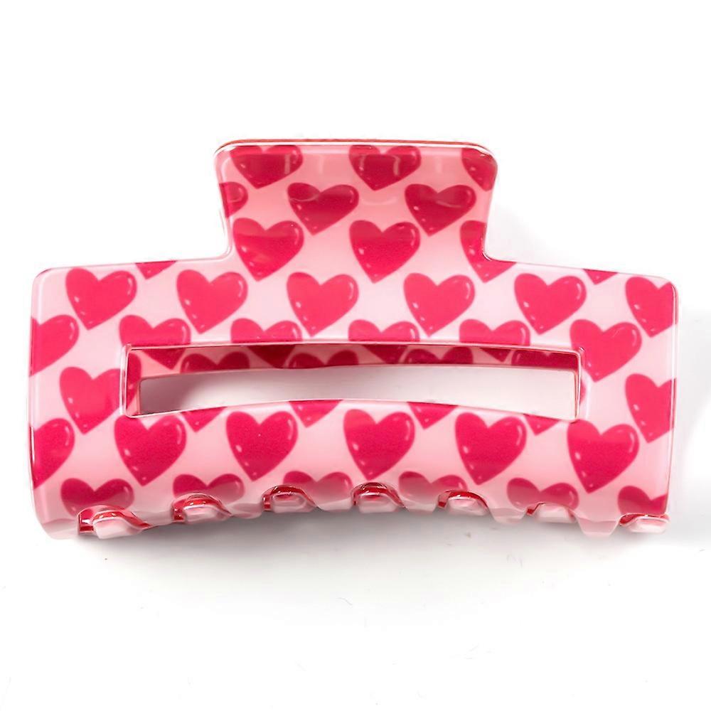 Rose Heart Hair Claw Clips Rectangular Hair Accessories Sweet Romance Floral Pattern Spring Grip - A