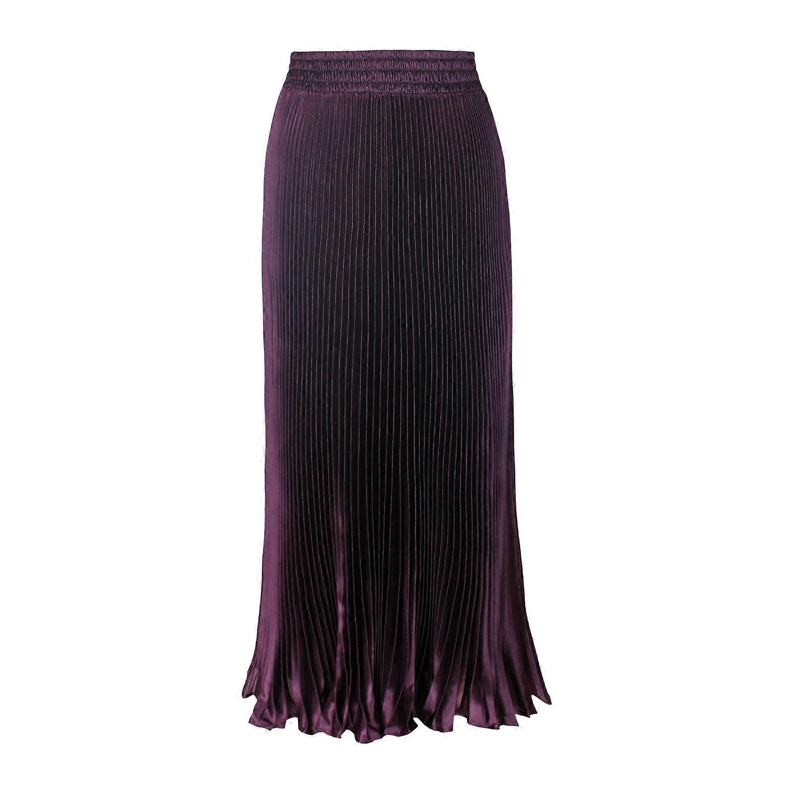 Women Maxi Skirt Elastic High Waist Solid Color Pleated Skirt Smooth Satin Long Skirt Work Leisure