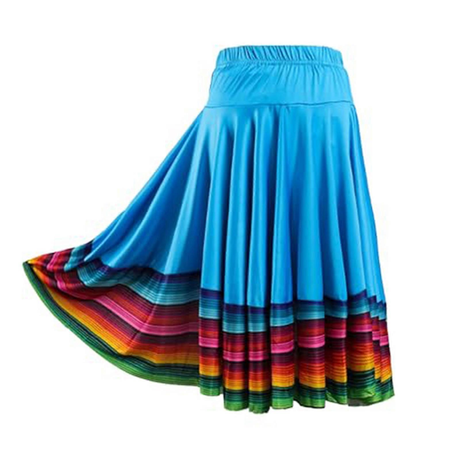 Midi Skirt Ladies Folk Dance Skirt Elastic High Waist Spanish Swing Skirt Rainbow Large Swing Hem