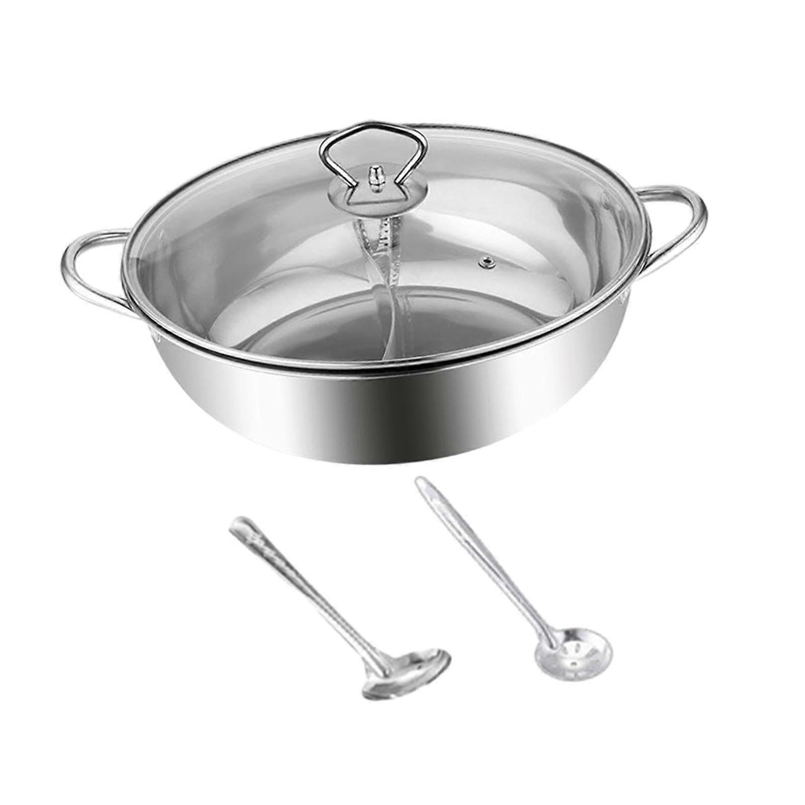 Stainless Steel Dual Section Shabu Shabu Hot Pot 28cm with Lid for Camping and Family Use
