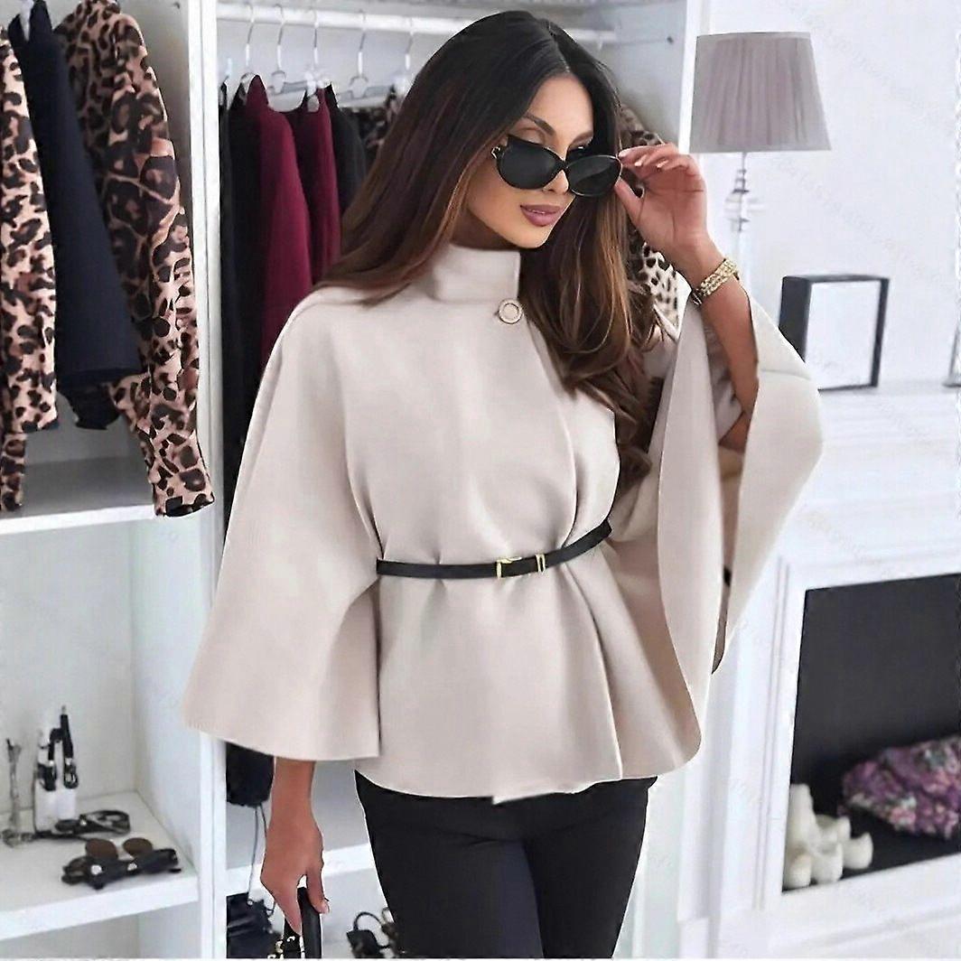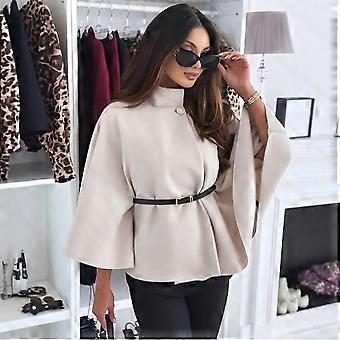 Women's Winter Fashion, Elegant And Stylish Solid-Color Waist-Cinching, Lace-Up, Woolen Cape Coat