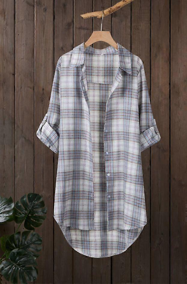 Plus Size Women's Spring Literary Retro Casual Loose Midi Plaid Shirt