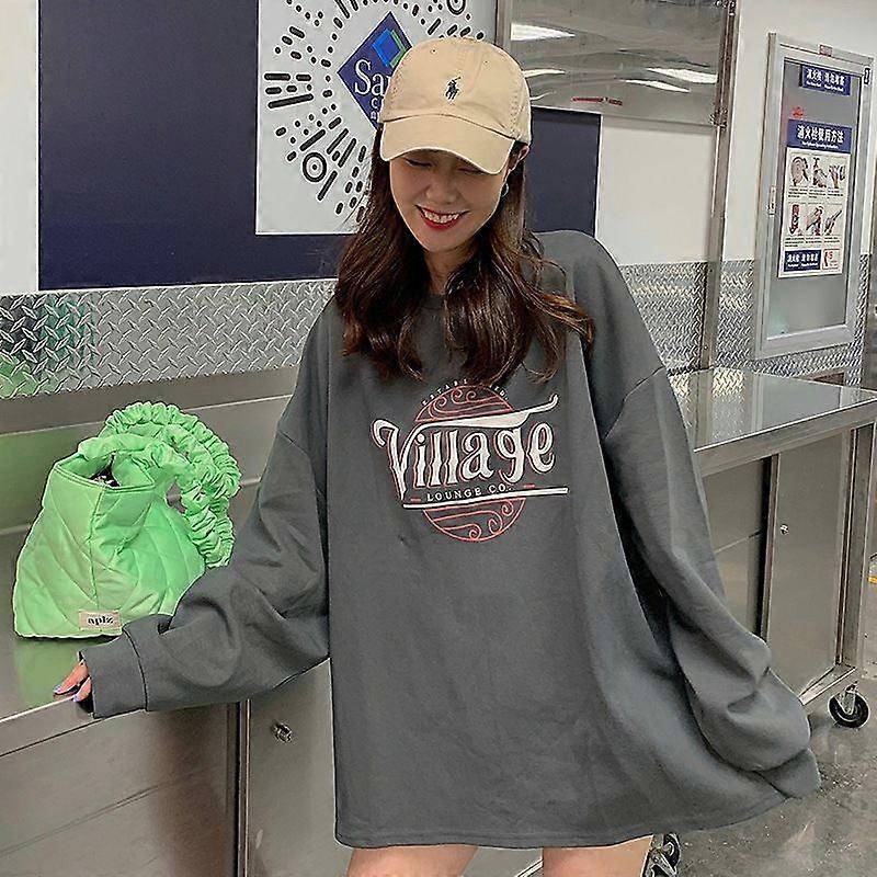 Autumn Thin Bf Style Loose Midi Student Long Sleeve Sweatshirt Schoolgirl Pullover Letter Print Top