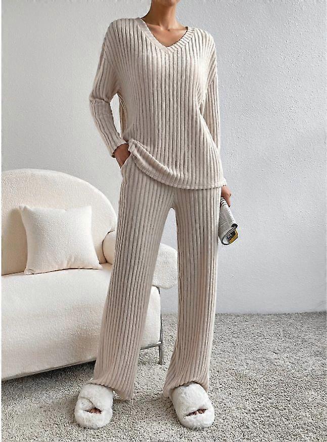 Women's Autumn Fashion Casual Straight Pants With Loose Fit, V-Neck, And Pitted Knit Collar