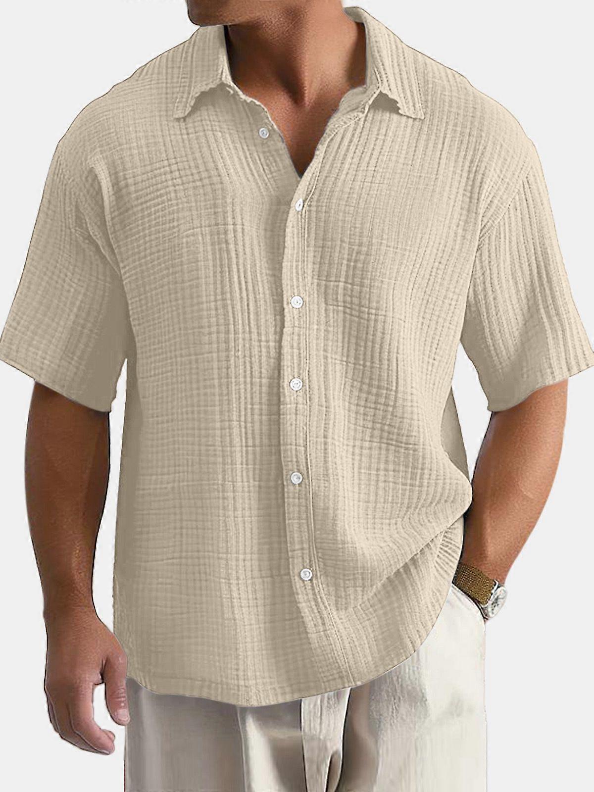 Men's Summer Loose And Casual Cotton And Linen Short-Sleeved Shirt