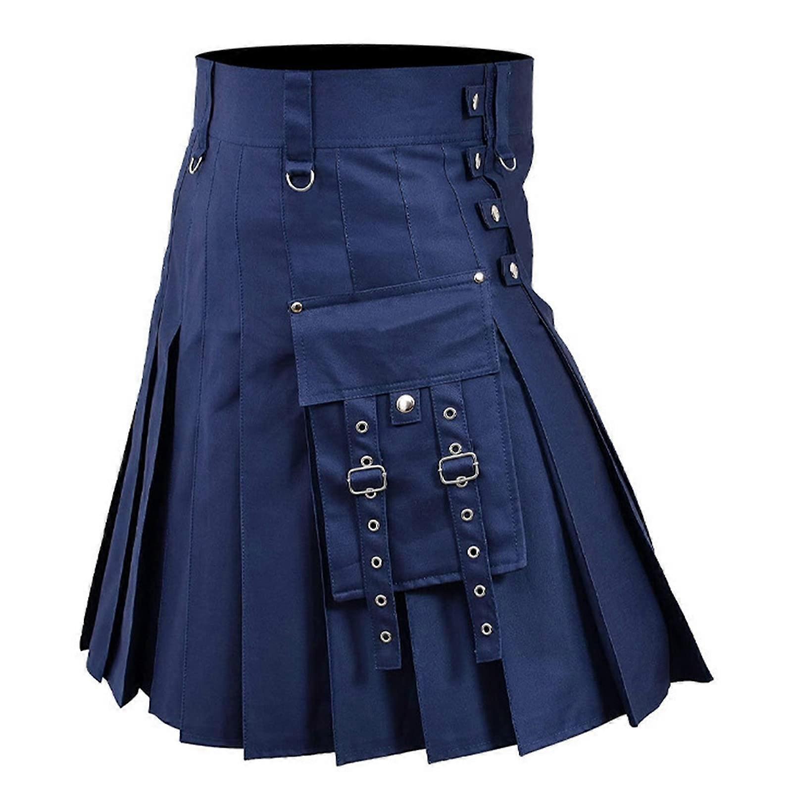 Men's Pullover Sweater with Scottish Kilt Pleated Skirt, Waist Retro Plaid, 5XL Navy
