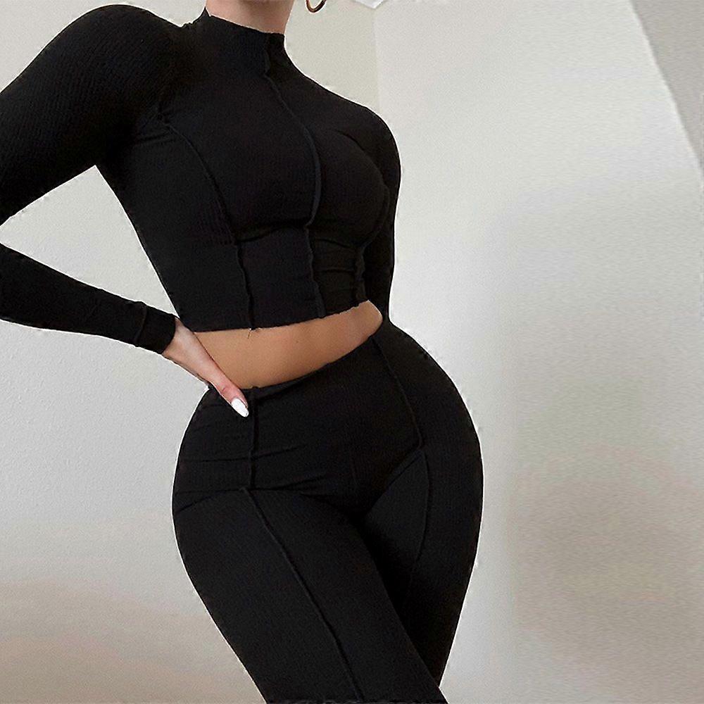 Black Spring Women's Fashion Set, A High-Waisted, Form-Fitting Solid Two-Piece Set With A Design Sense For Wearing Inside Out